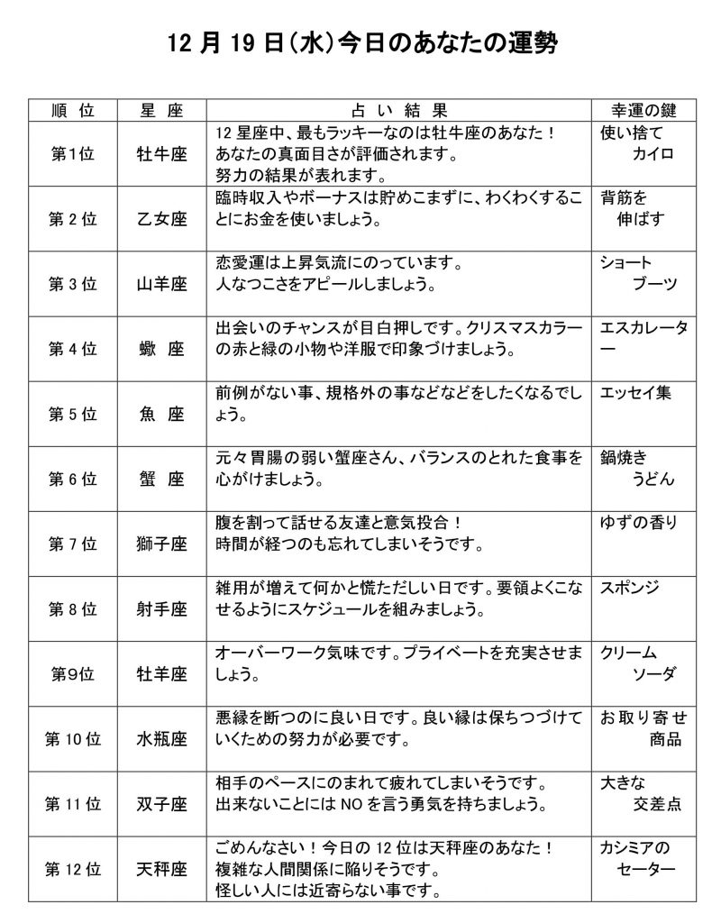 明日の総合運 何事に対してもやる気が湧いてチャレンジしたくなります。 将来的にモノになった時の自分を想像しながらどれにしようかと比較検討に一生懸命な一日になります。 値段で迷うよりは将来的にどんな役に立ちそうかを考えて下さい。 これ12星座 明日の運勢 ランキングつき星座占い 明日の総合運、恋愛運、仕事運 ★毎日0時更新★無料 0時まで待たなくてもok!明日の運勢を先取りで確認しよう! 12星座別「今月の運勢ランキング」。無料&毎月更新。「当たる!